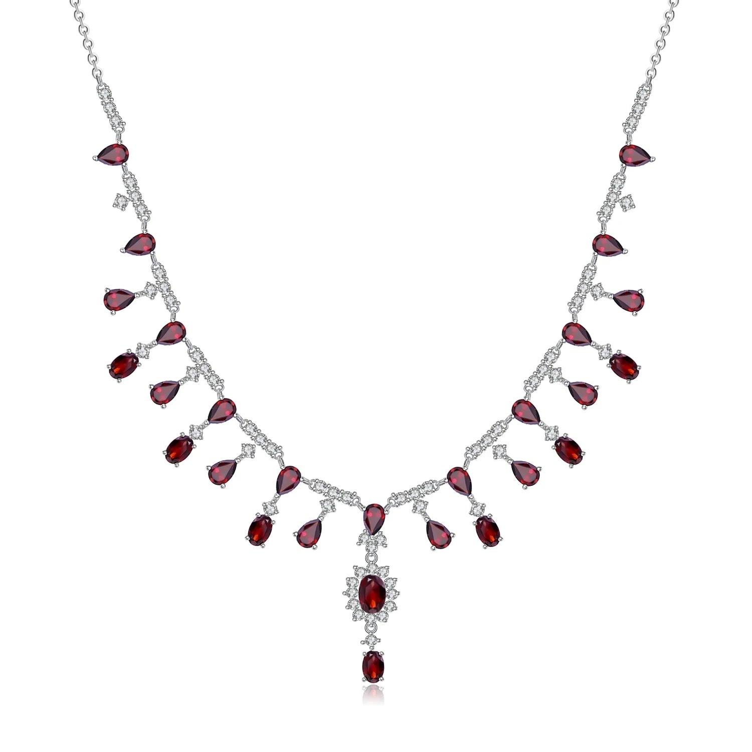 GEM'S BALLET 15,2Ct Naturalny Czerwony Granat Naszyjnik 925 Srebro Kamień Szlachetny Ślubny Naszyjnik Ślubny Dla Kobiet Biżuteria Ekskluzywna